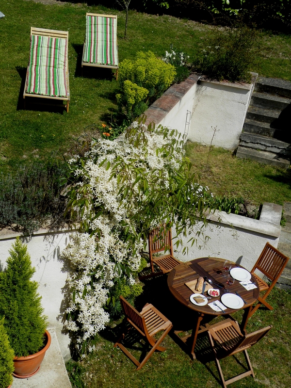 Accès direct au jardin en terrasse depuis l'intérieur.